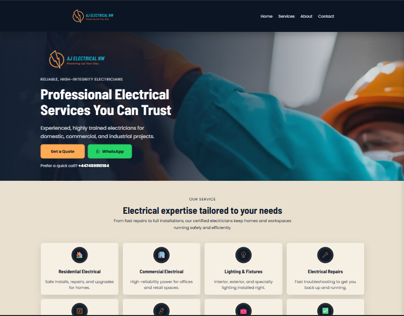 A complete redesign and rebuild for a Liverpool-based electrical company — built for higher conversions, local SEO strength, and easy future expansion into booking systems and service modules.